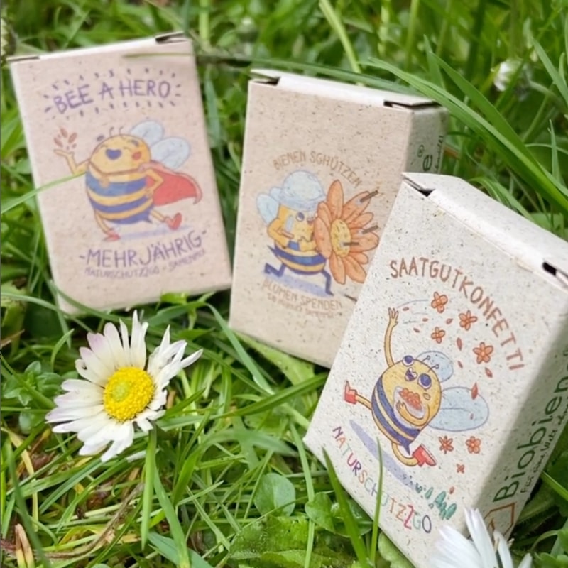 Umweltfreundlich und Innovativ  Maxibriefkarton (NBG-MB1) aus 35% heimischem Gras sowie 65% Altpapier als Stanzverpackung: Preise Inclusive Ihrer Wunschbedruckung auf max. 3 Seiten in bis zu max. 4C (4 Farben) Digitaldruck.  Die entsprechenden Druck-Dateien können Sie im Warenkorb mit maximal 20mb zu uns uploaden. (Warenkorb bearbeiten) in der Größe als Innenmaß: 305x215x45mm, aussen 330x220x47mm  Gewicht: 94g (ca.) Vorteile: Bedruckte Kartons für den Maxibriefversand Dreiseitiger Aufdruck (Frontseite 1 und 2 , sowie Kartondeckel) Hochwertiger 1 bis 4-Farben Aufdruck in CMYK Umweltfreundlich, da die benutzten Farben wasserbasiert sind.  Einmal dieses Angebot über den Onlineshop einkauft benötigen wir von Ihnen nur noch folgende Daten um die Bedruckung der Kartonagen umsetzen zu können: Logo/ Grafik-Dateien als PDF-Format mit mindesten 300dpi oder optimal: Logo/ Grafik-Dateien als  Vector-Format (png oder eps) mit mindesten 300dpi max. 30% Druckfläche.  Bitte schicken Sie Ihre Druckdaten an druckstudio@biobiene.com  Wichtige Hinweise zum Prozedere:  Bevor die Bedruckung der gekauften Kartons stattfindet erhalten Sie eine e-Mail mit der Bitte um Druckfreigabe. Nach Druckfreigabe beträgt die Lieferzeit 3-5 Werktage (Mo.-Fr.). Sie haben die Möglichkeit bei uns ein Originalmuster des gewünschten Karton zu bestellen. Der Preis pro Stück beträgt 10.- €/netto. Der Aufdruck wird immer mittig auf der jeweiligen Kartonseite platziert. Falls Sie eine andere Platzierung wünschen, so bitten wir um Mitteilung. Die Farbe Weiß ist nicht druckbar, wird aber über über die Kartonoberfläche - weisse Packbiene® Magic Kartons - mit eingebracht. Wir gehen bei unserer Preiskalkulation von einer maximalen Bedruckung der Kartonoberfläche in Höhe von 30% aus. Eine größere Druckfläche muss separat angefragt werden. Aus Gründen der Umweltfreundlich- & Verträglichkeit haben wir uns für wasserbasierte & lösliche Farben entschieden. Das bedruckte Verpackungsmaterial darf daher nicht Feuchtigkeit wie Regen ausgesetzt werden. Gerne entwickeln wir auch gegen Aufpreis ein entsprechendes Layout für Sie. Sprechen Sie uns darauf an!   Sie wollen ihren Versand weiter umweltfreundlich ausbauen? Dann nutzen sie einfach die umweltfreundlichen  Graskartons der Marke „Naturebox“